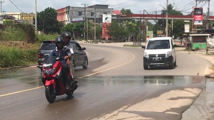 Tak sedikit pengendara yang hampir tergelincir jika melintas di jalan Raya Tanjunguban Km 16, Toapaya Selatan, Bintan