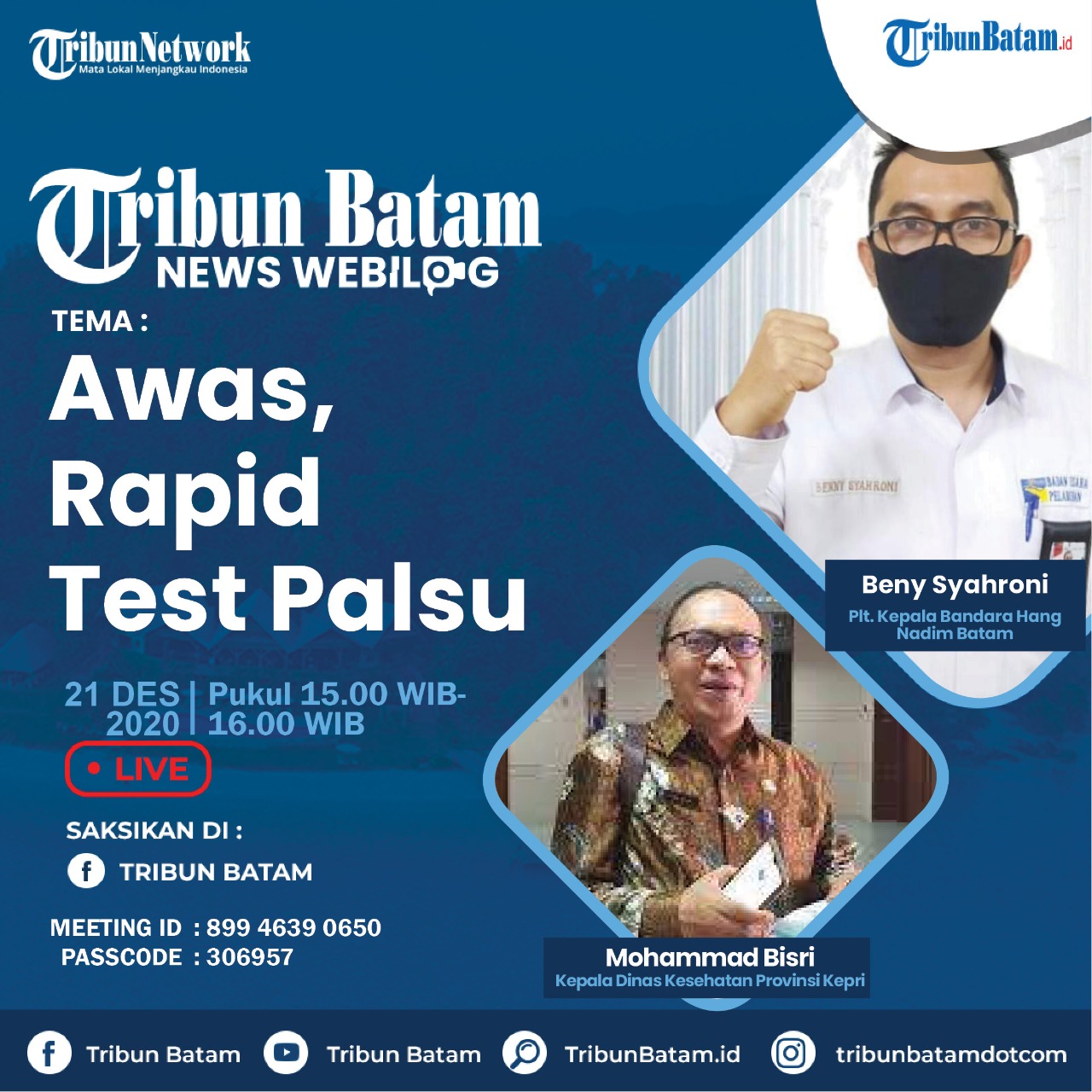 KEPALA Dinkes Kepri, Mohammad Bisri menyampaikan penggunaan rapid test anitgen diberlakukan sebagai antisipasi penyebaran Covid-19 pada masa liburan Natal dan Tahun Baru.
