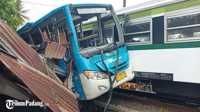 Kereta Api Tabrak Bus Trans Padang di Lubuk Buaya Kota Padang