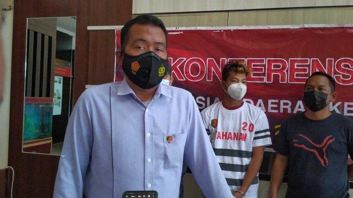 Saat konferesi Pers di Polda Kepri, tersangka E mengaku hanya berniat mengambil barang milik korban.