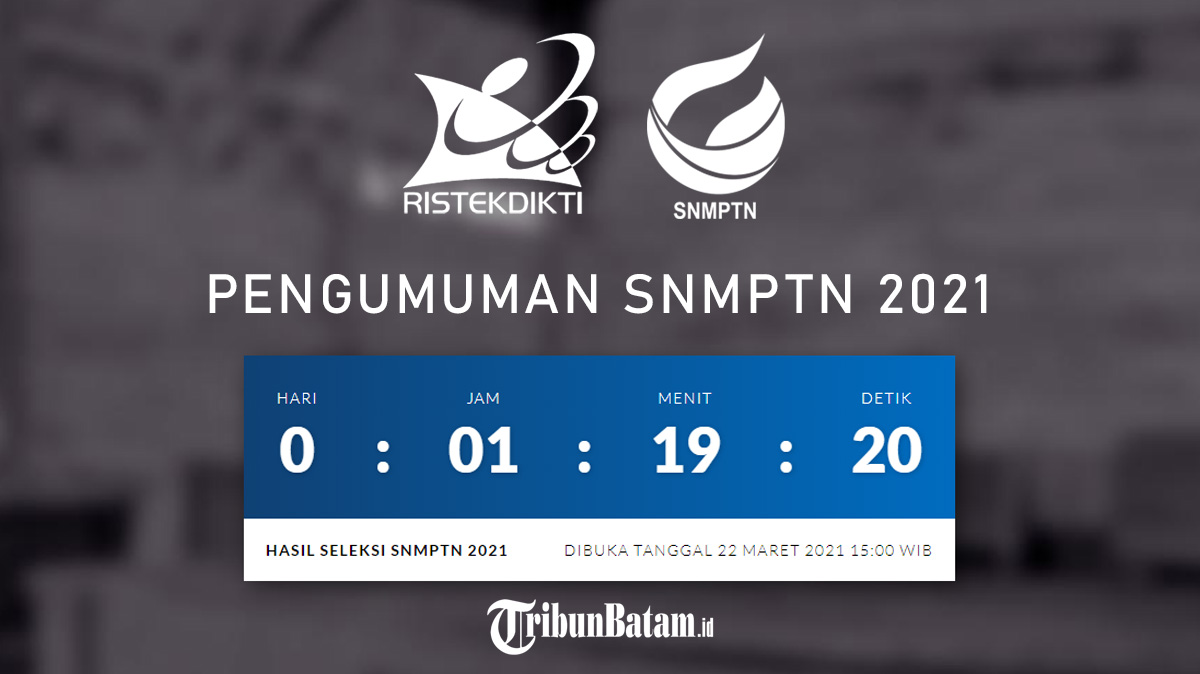JAKARTA, TRIBUNBATAM.id - Peserta hasil Seleksi Nasional Masuk Perguruan Tinggi Negeri 2021 (SNMPTN 2021) sudah bisa melihat hasil seleksi yang diumumkan Senin (22/3/2021) sore ini.