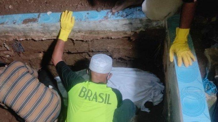 Saat ditemukan jasad korban dengan asal dikuburkan dan kondisi kakinya terlihat menyembul.