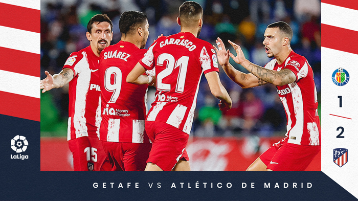 Dua gol kemenangan Atletico Madrid atas Getafe pada pekan 6 Liga Spanyol 2021-2022 ini dicetak striker asal Uruguay Luis Suarez masing-masing pada menit ke 78 dan menit ke 90+1'.