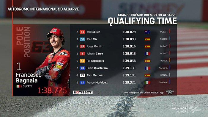 Hasil Kualifikasi MotoGP Algarve Portugal 2021, Francesco Bagnaia raih pole position, Jack Miller no 2, Fabio Quartararo no 7, Valentino Rossi no 16