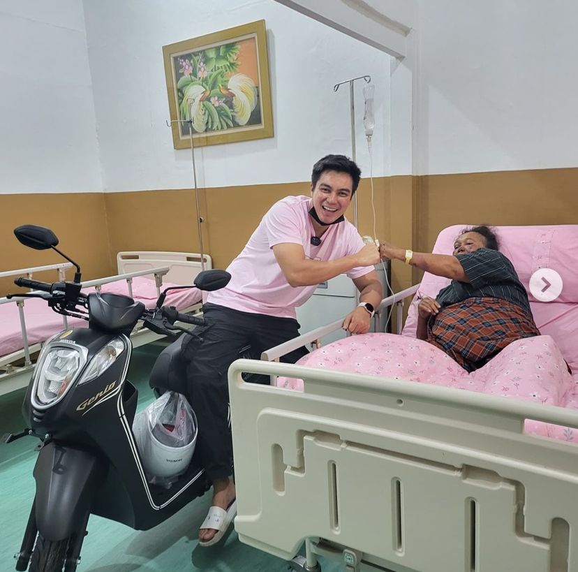 Baim Wong memberikan hadiah berupa motor matik baru untuk ibu Ramadoni, seorang korban begal di Medan. Sebab, motor milik ibu Ramadoni dirampas begal.