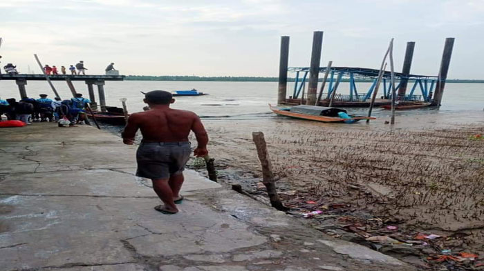 "Sebelum ambruk tiang penyangga jembatan ponton pelabuhan itu sudah lebih dulu patah sejak pagi, Senin (17/1/2022)," ucap Suzandra, Selasa (18/1/2022).