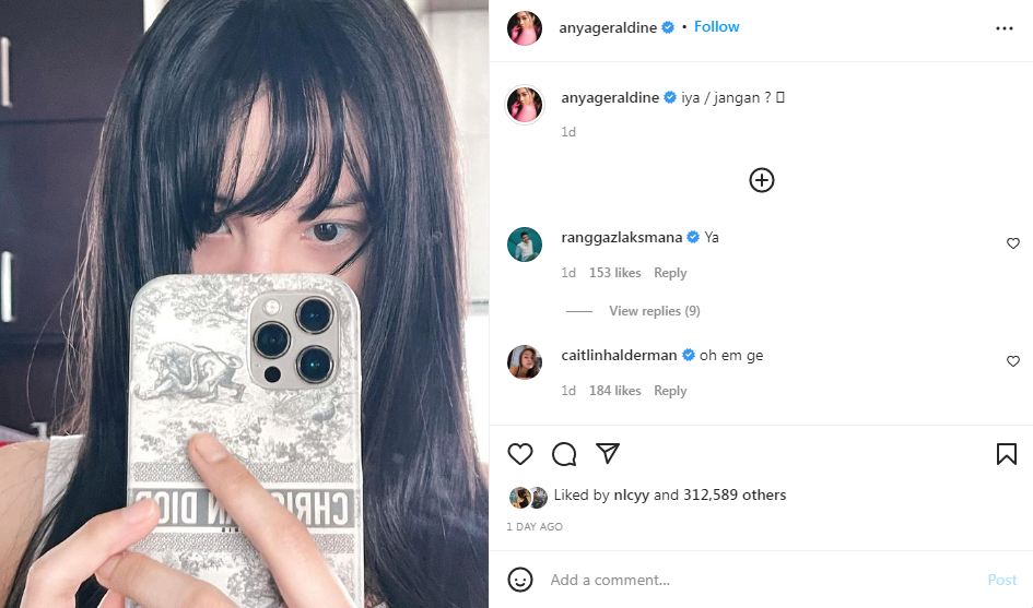 Hal itu karena Anya Geraldine unggah potret dengan rambutnya yang berponi di akun Instagram miliknya.