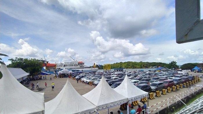 Kepadatan kendaraan roda empat hanya terlihat di parkiran tunggu kendaraan roda empat yang hendak naik ke kapal.