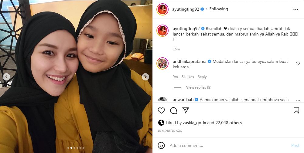Ayu Ting Ting pun meminta doa kepada masyarakat agar ia dan keluarga bisa menjalankan ibadah umrah dengan lancar dan selamat sampai kembali ke Indonesia.