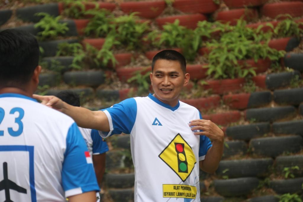 Hal itu dilakukan Personil Ditlantas Polda Kepri pada laga pertandingan sepak bola Kapolda Kepri Cup II yang berlangsung di Stadion Satya Prabu Polda Kepri, Kamis (2/6/2022) sore.