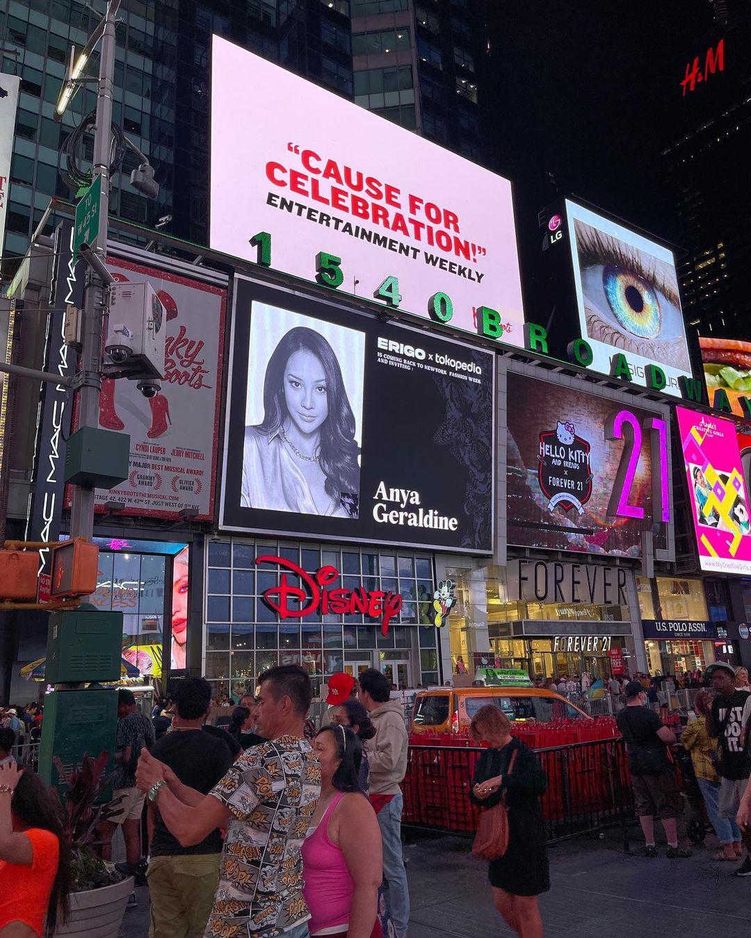 Terlihat wajah Anya Geraldine hingga deretan artis lain terpampang di billboard New York.