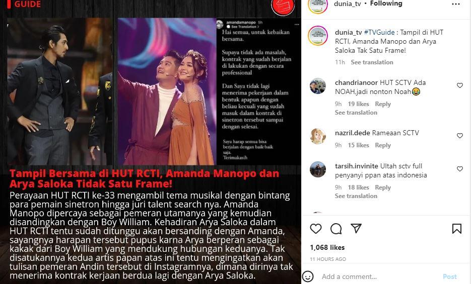 Baca juga: RCTI Tuai Protes Imbas Tak Pasangkan Amanda Manopo dan Arya Saloka di Panggung