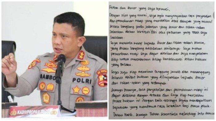 Ferdy Sambo tuliskan penyesalan hingga memohon maaf kepada para seniornya.