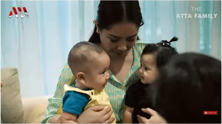 Saat itu, Nagita Slavina memangku Ameena dan Rayyanza bersamaan.