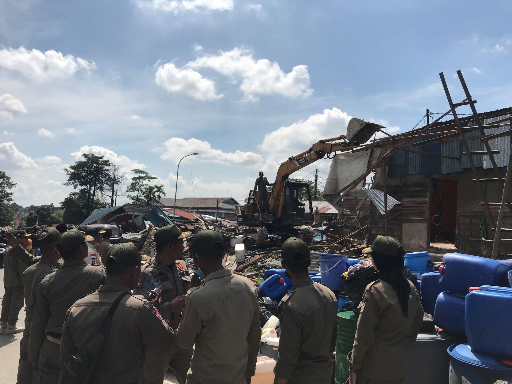 “Sekitar 15 kios yang kita lakukan pembongkaran di simpang Kavling Lama. Jauh-jauh hari kita sudah memberikan surat peringatan kepada penghuni kios untuk dilakukan pembongkaran sendiri. Dan hari ini Tim Terpadu melakukan pembongkaran menggunakan alat berat beko,” ujar Imam Tohari.