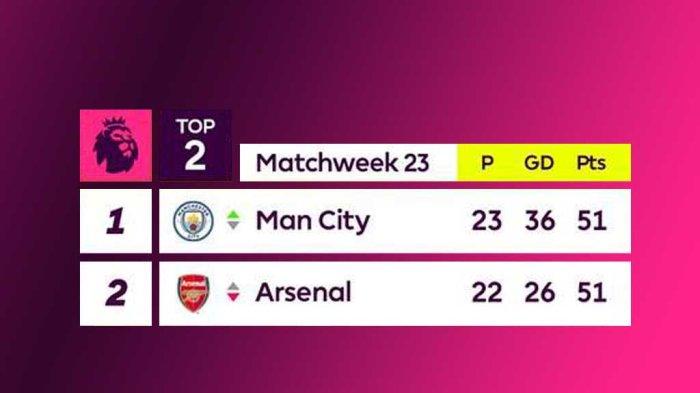 Hasil Arsenal vs Man City tersebut membuat The Citizens mengoleksi 51 poin.