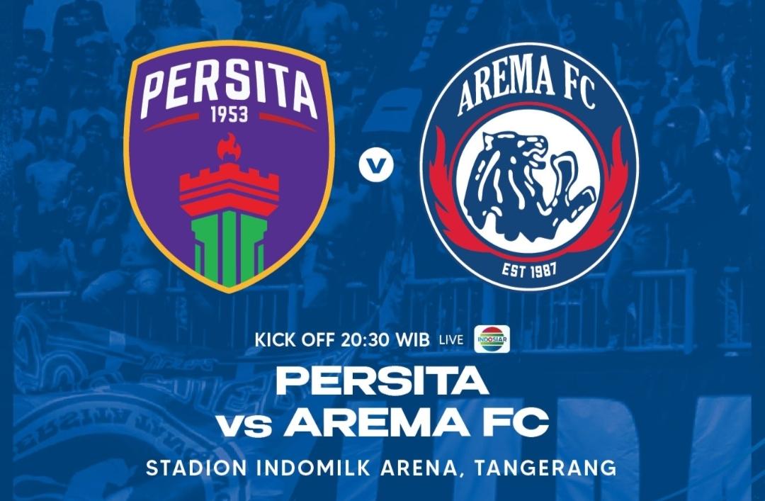 Live streaming laga pekan 32 BRI Liga 1 2022-2023 Persita vs Arema FC, Sabtu (01/04/2023) pukul 20.30 WIB