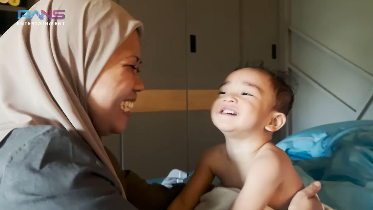Melansir YouTube RANS Entertainment, Minggu (14/5/2023), Rayyanza yang baru selesai mandi langsung tersenyum ketika mendapati Sus Rini menghampirinya untuk pertama kali setelah pulang kampung.
