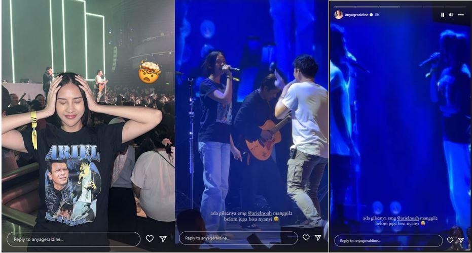 "ada gila-gilanya emang @arielNOAH manggil-manggil belum juga bisa nyanyi," caption dalam unggahan story Instagram @anyageraldine, Jumat (26/5/2023).