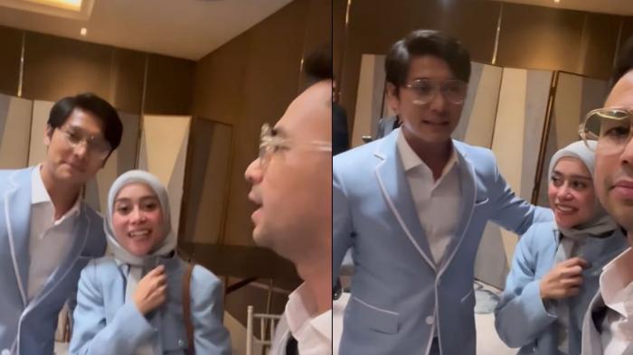Raffi Ahmad tampak bertemu dengan pasangan selebritis, Lesti Kejora dan Rizky Billar.