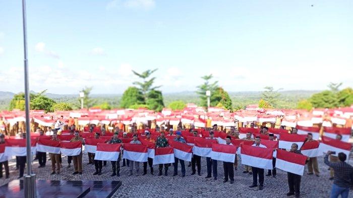 NATUNA, TRIBUNBATAM.id - Ribuan bendera merah putih dikibarkan di halaman Kantor Bupati Natuna, Bukit Arai, Kecamatan Bunguran Timur, Natuna Senin, (7/8/2023).