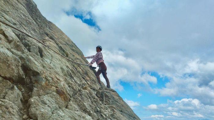 Pertama kali melakukan panjat tebing, Natasha Wilona berhasil menaklukkan tebing setinggi 2.182 meter itu.