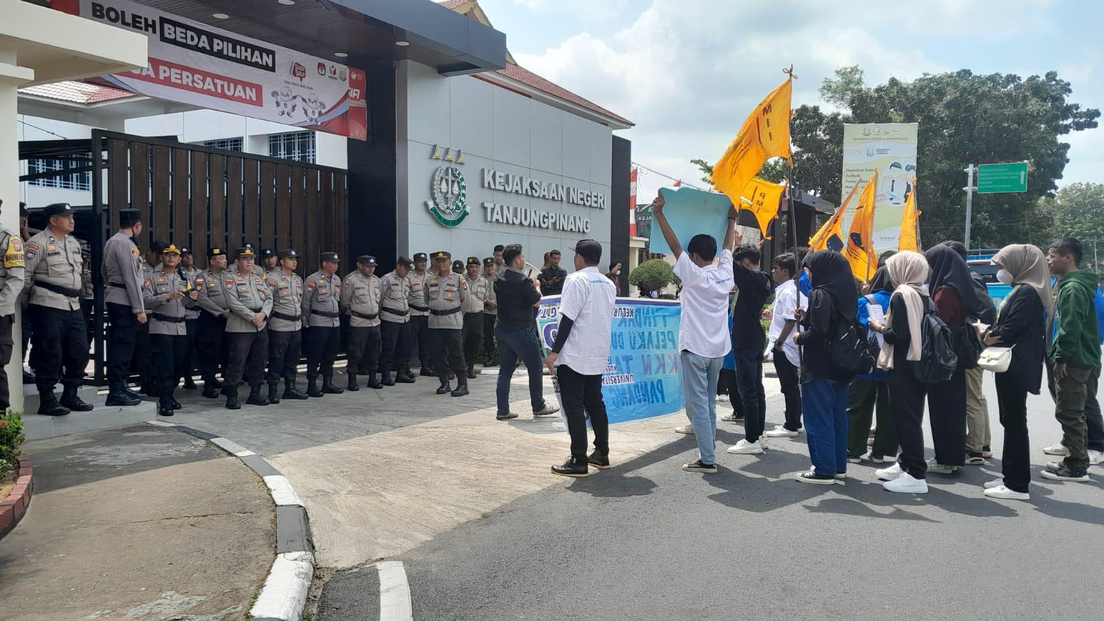 TANJUNGPINANG, TRIBUNBATAM.id - Demo di Tanjungpinang terjadi di depan kantor Kejaksaan Negeri (Kejari) Tanjungpinang, Senin (4/9/2023).
