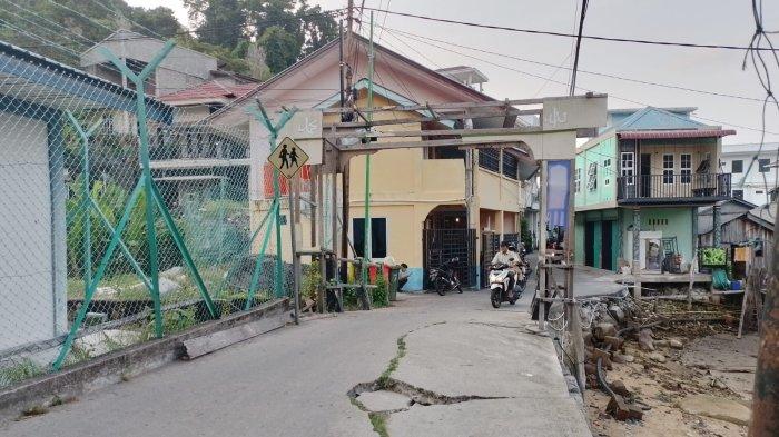 Pantauan TRIBUNBATAM.id, ada keretakan cukup panjang serta lubang menganga yang cukuk lebar di jalan semenisasi itu.