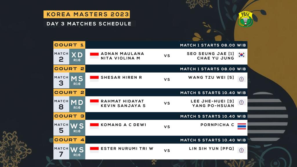 Di babak 16 besar Korea Masters 2023 pada Kamis (9/11/2023) ini, ada lima wakil Indonesia yang akan bertanding.