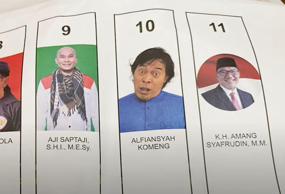 Jika biasanya caleg mengenakan dasi hingga kemeja untuk potret surat suara, tidak dengan Komeng yang paparkan foto kocaknya di kertas Pemilu 2024.