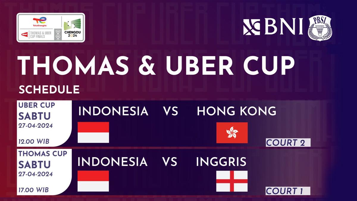 Baca juga: Jadwal Thomas Cup dan Uber Cup 2024, Putra Indonesia vs Inggris, Putri Indonesia vs Hong Kong