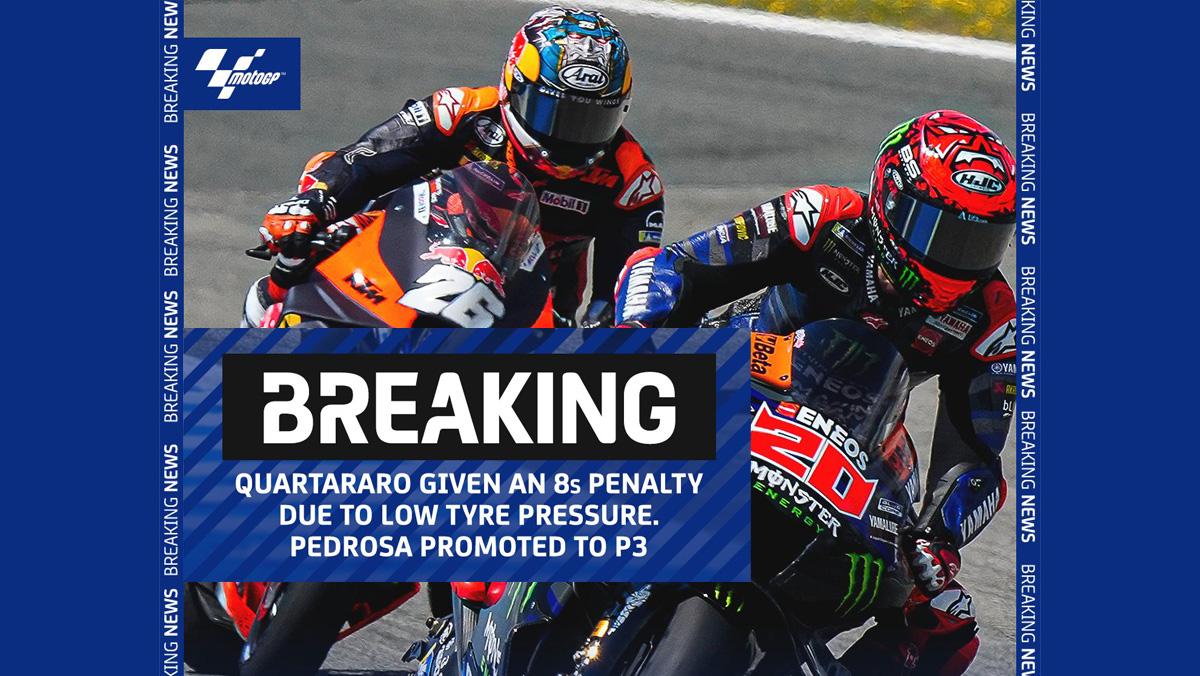 Fabio Quartararo turun ke posisi ke-5 akibat penali tekanan ban yang didapatkannya.