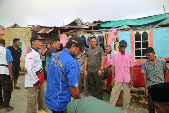 Kodim 0317/TBK bantu korban angin puting beliung di Karimun Kepri dengan menyerahkan sejumlah paket sembako.