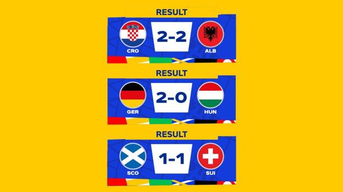 Hasil, Klasemen, Top Skor Piala Eropa 2024 matchday 2 setelah Jerman menang vs Hungaria, Swiss imbang vs Skotlandia, Kroasia imbang lawan Albania