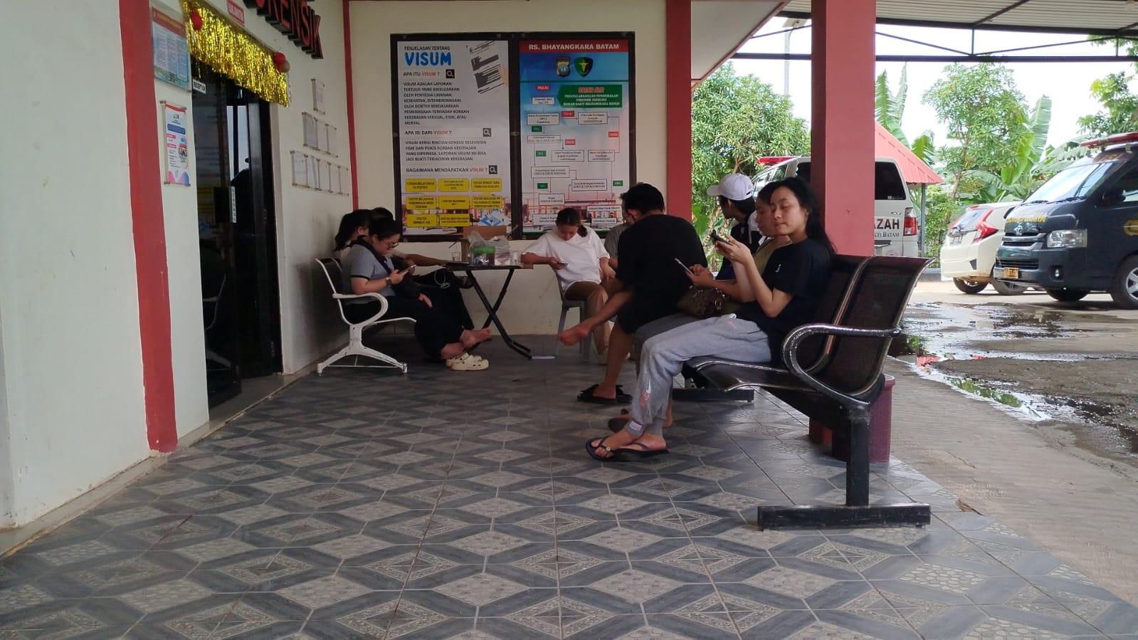 TRIBUNBATAM.id, BATAM - Sejumlah orang duduk di depan ruang tunggu forensik Rumah Sakit Bhayangkara Polda Kepri di Kota Batam setelah sesosok jenazah pria masuk ke salah satu ruangan.