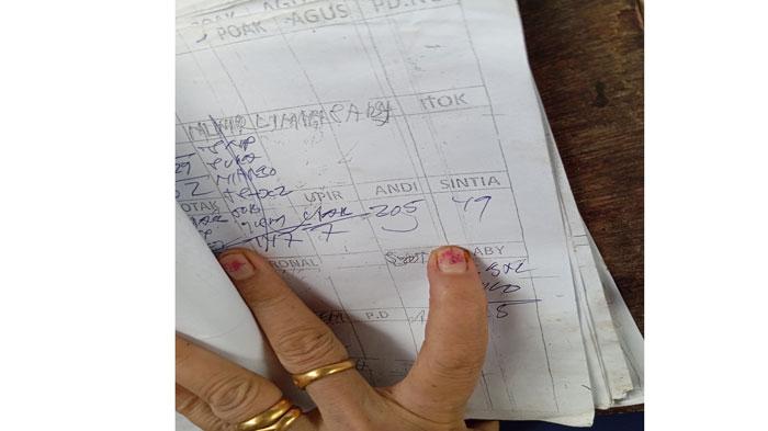 "Ini sampai sekarang utang pelaku masih ada, saya masih tulis. Ini bon yang belum dibayar Rp49 ribu," kata Mega sambil menunjukkan tulisan pembayaran.