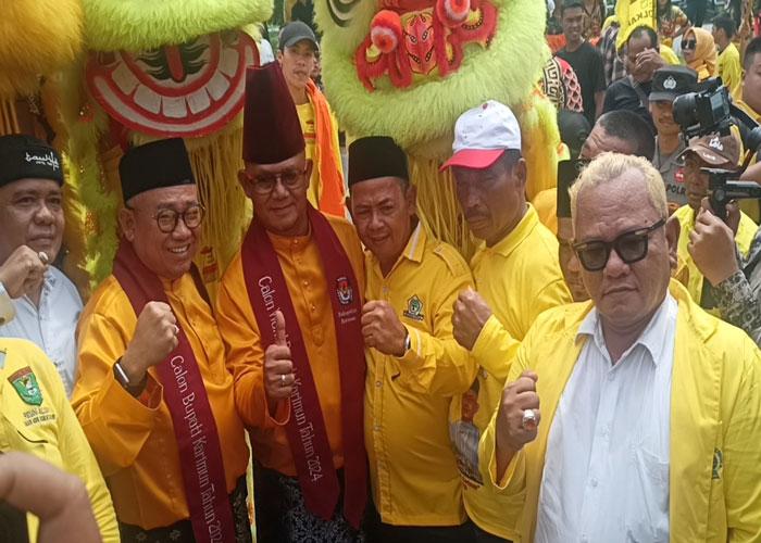 Selain diusung Partai Golkar, sejumlah pengurus parpol non parlemen seperti Partai Gelora, PSI, PKN hingga PBB mendampingi bakal pasangan calon Pilkada Karimun 2024 ke kantor KPU.