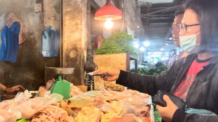 Daging ayam juga naik dari Rp35.000 menjadi Rp40.000 per kilogram, sementara harga timun tetap di Rp12.000 per kilogram, wortel Rp18.000 per kilogram, kangkung Rp3.000 per ikat, dan sawi Rp3.000 per ikat.