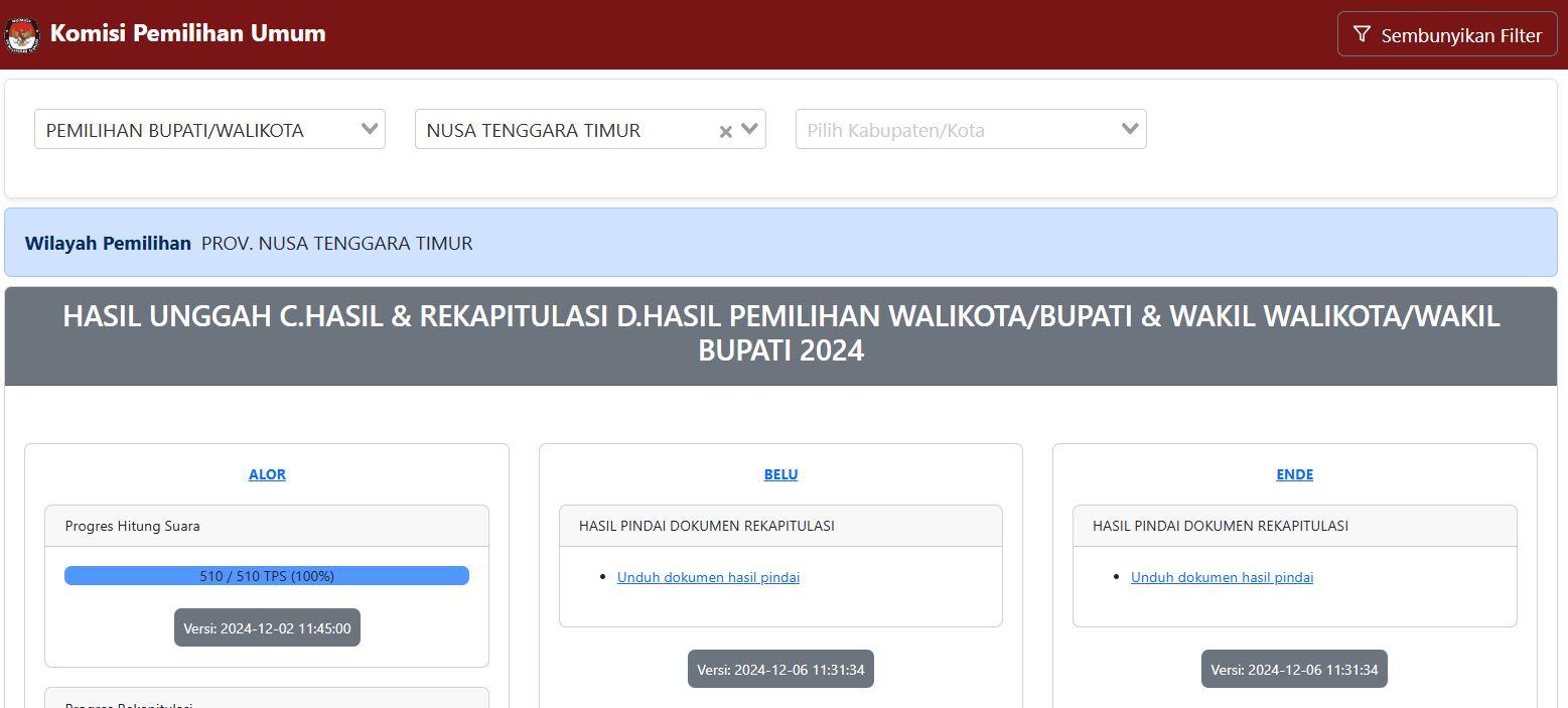Berdasarkan hasil rekap pleno KPU RI, Pilkada Nusa Tenggara Timur terlaksana dengan baik.