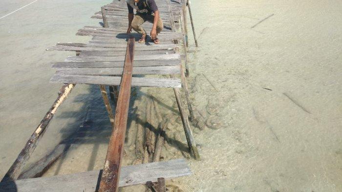 ANAMBAS, TRIBUNBATAM.id - Jembatan pelantar Pelabuhan Kusik, Desa Rewak, Kabupaten Kepulauan Anambas, kian memprihantinkan.