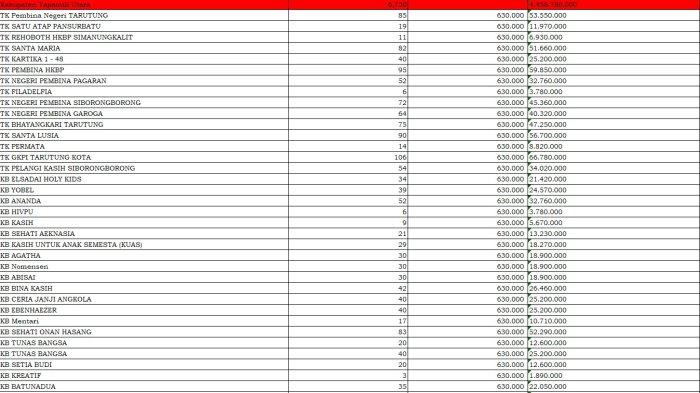 Total dana bos 2025 merupakan alokasi untuk setiap PAUD di Kabupaten Tapanuli Utara, Provinsi Sumatra Utara.