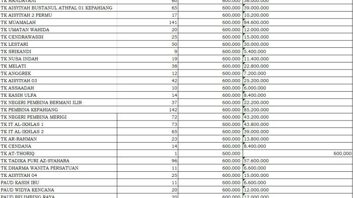 Inilah rincian dana BOS 2025 setiap PAUD di Kabupaten Kepahiang, Provinsi Bengkulu resmi dari Kemendikdasmen