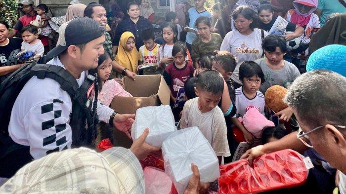Bukan hanya makanan, ia juga membagikan bahan pokok serta buku sekolah dan mainan anak-anak.