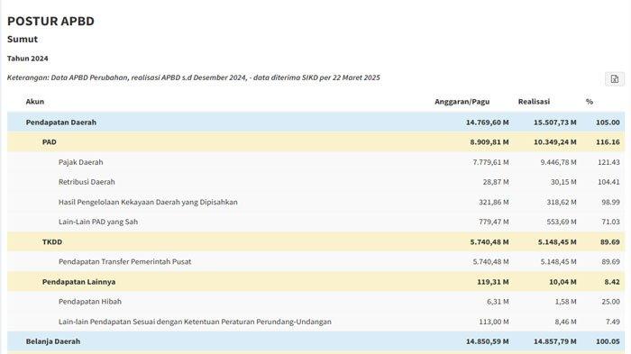 Provinsi Sumatera Utara berhasil mendapatkan pendapatan asli daerah 2025 sebesar Rp 10,3 triliun atau 116 persen dari target PAD 2024.