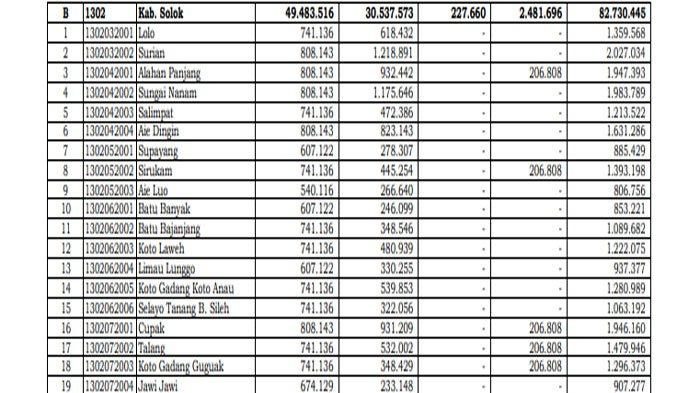DANA DESA - Alokasi Dana Desa 2025 Kabupaten Solok Provinsi Sumatera Barat