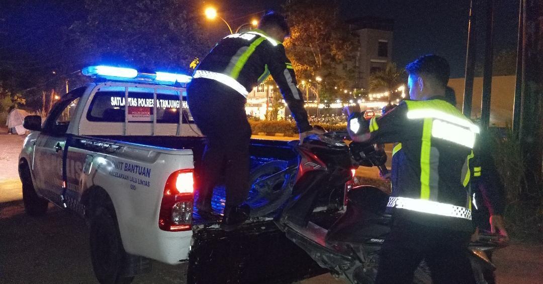 Tak lama berselang, aparat Kepolisian dari Unit Gakkum Satlantas Polresta Tanjungpinang tiba di lokasi untuk mengamankan kendaraan korban.