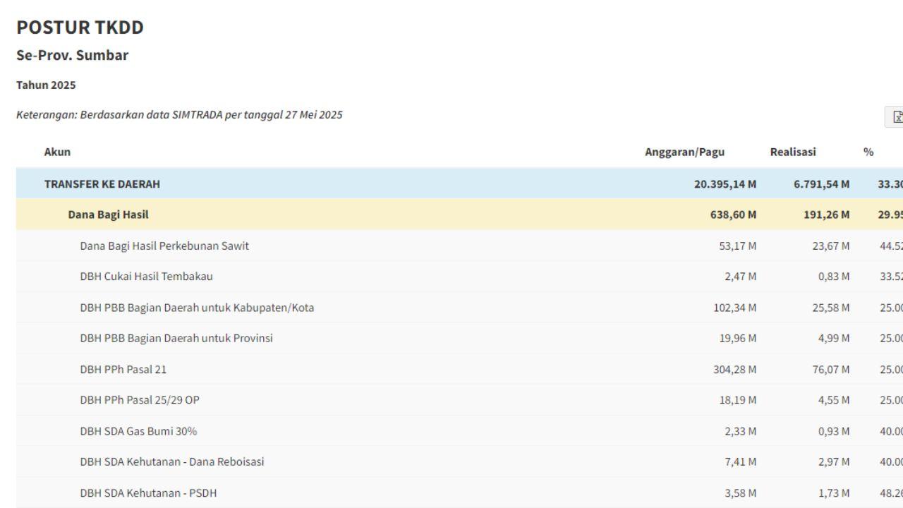 Sudah Cair Rp 191 Miliar, Ini Rincian Dana Bagi Hasil 2025 Per Daerah di Sumatera Barat