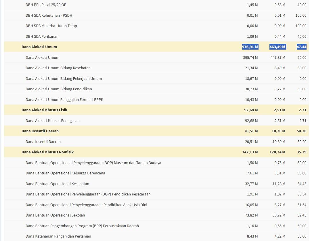 | Dana Alokasi Umum | 976,91 M | 463,49 M | 47.44 | |