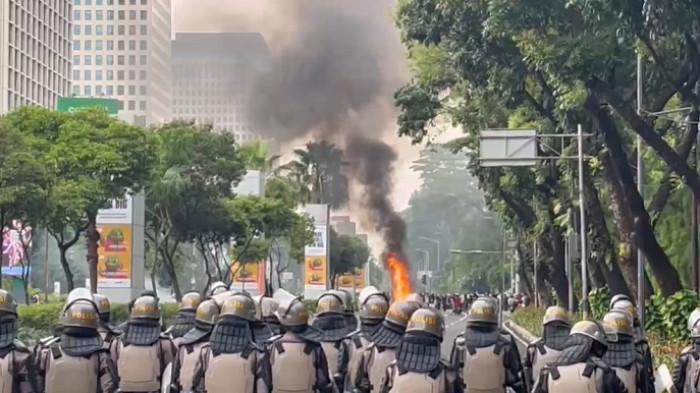 Dorongan itu membuat kerumunan massa semakin terdorong ke arah Plaza Senayan, menimbulkan kepadatan lalu lintas di kawasan yang biasanya ramai dengan aktivitas pusat perbelanjaan dan perkantoran.