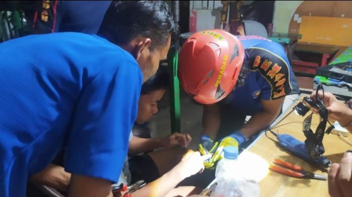 Kondisi jari remaja di Anambas itu sudah memerah dan bengkak karena cincin yang sudah dua hari tersangkut.